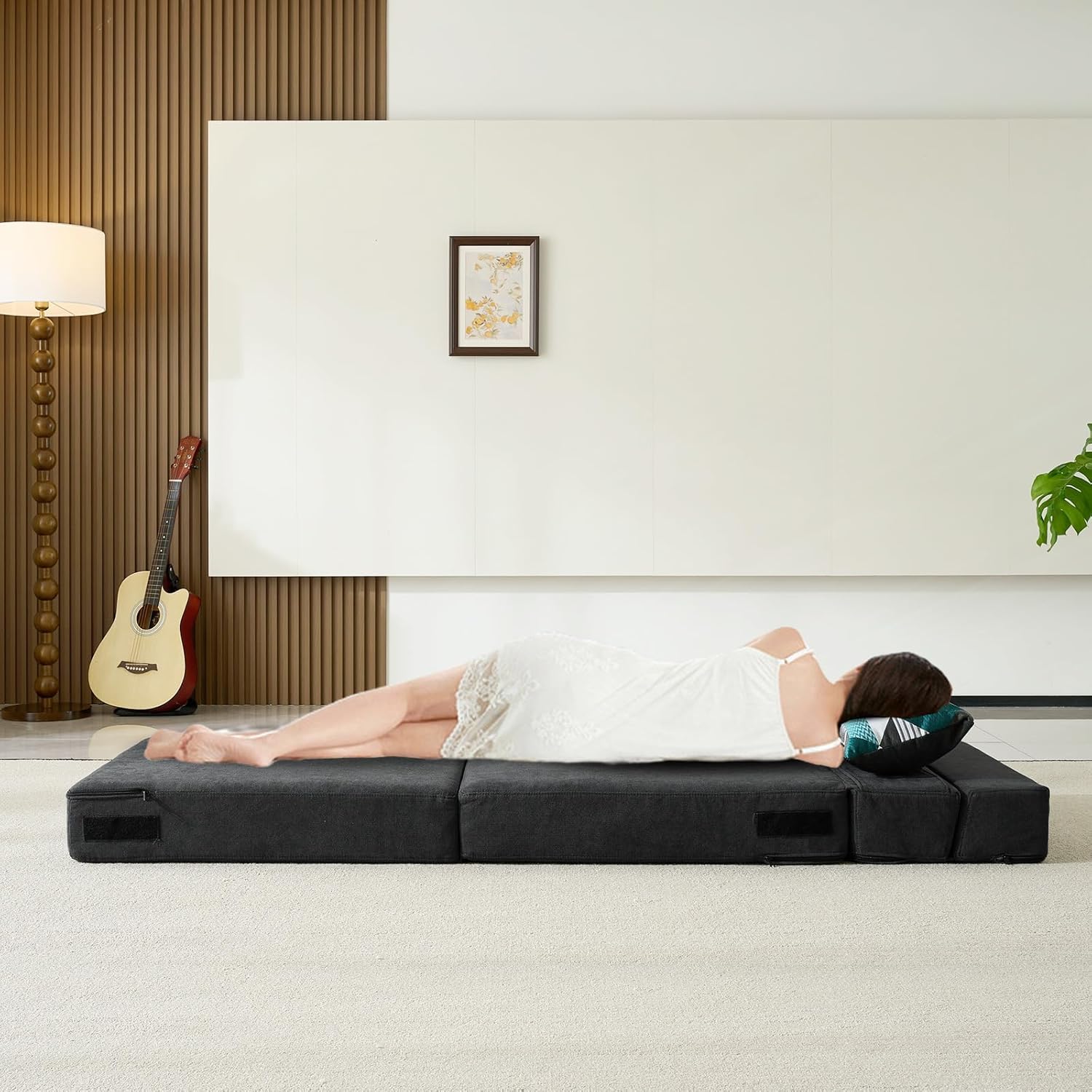 - No Assembly & Easy Conversion:This foldable chair bed requires no assembly and opens up for use. It is easy to move, fold, store and carry and can be effortlessly converted into a floor sofa, chaise lounge, recliner and mattress for your different needs.